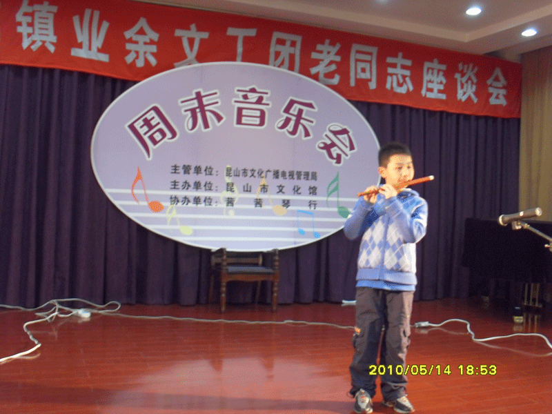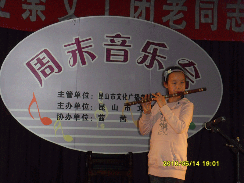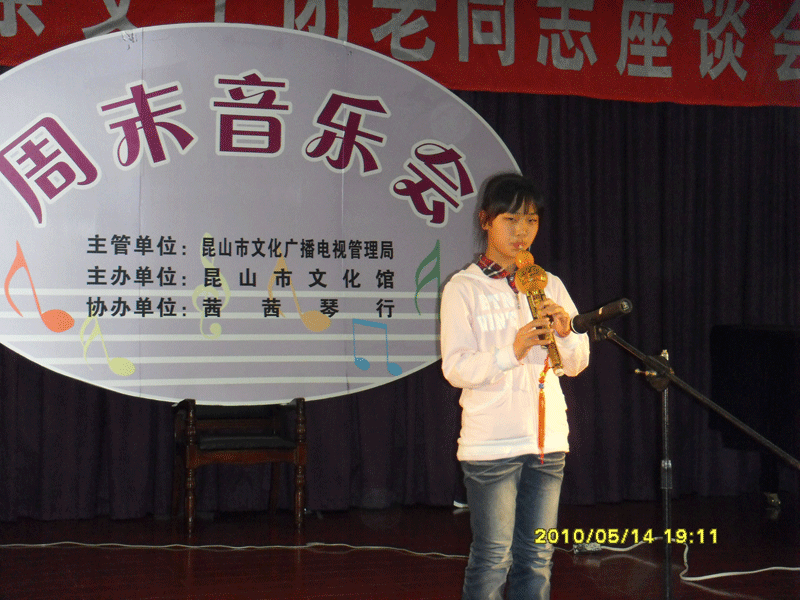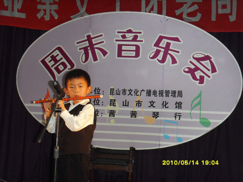 茜茜琴行第十七期周末演奏會(huì )--竹笛專(zhuān)場(chǎng)于2010年5月14日晚在昆山文化館舉行!(附演出照片)